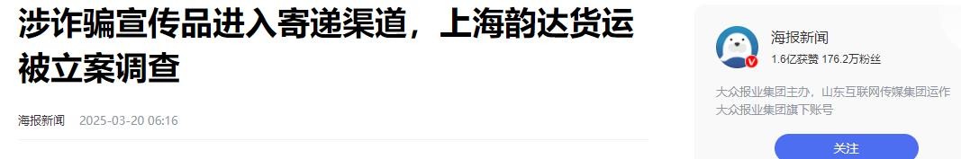 9亿网民注意了!韵达快递被立案调查,原因曝光:竟是骗子帮凶