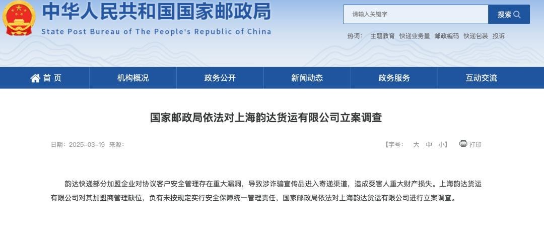 3 月 19 日,国家邮政局发布的一则通报,就将韵达货运有限公司推上了风口浪尖。通报明确指出,韵达快递在客户安全管理方面存在重大漏洞。