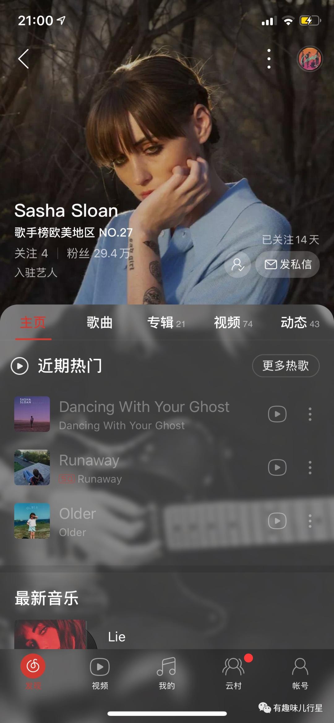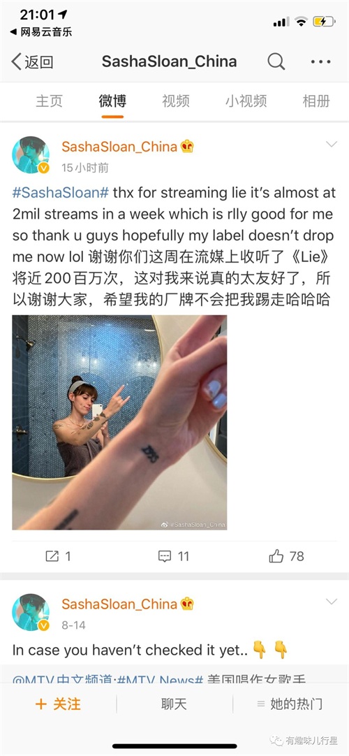 Sasha的网易云粉丝远远多过微博的粉丝和互动量。