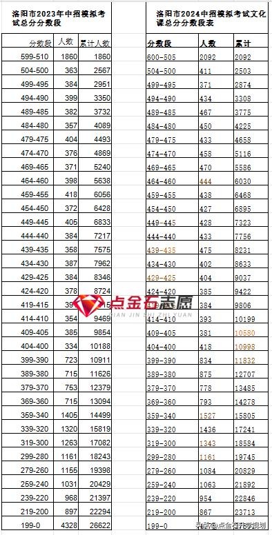 通过2024洛阳中考一模的五分一段表,今年中考人数比去年增加1260人。 通过历年录取分观察学校的位次变化,以便报考院校排序,通过2024洛阳各高中的招生计划可以预估各个学校的录取位次。