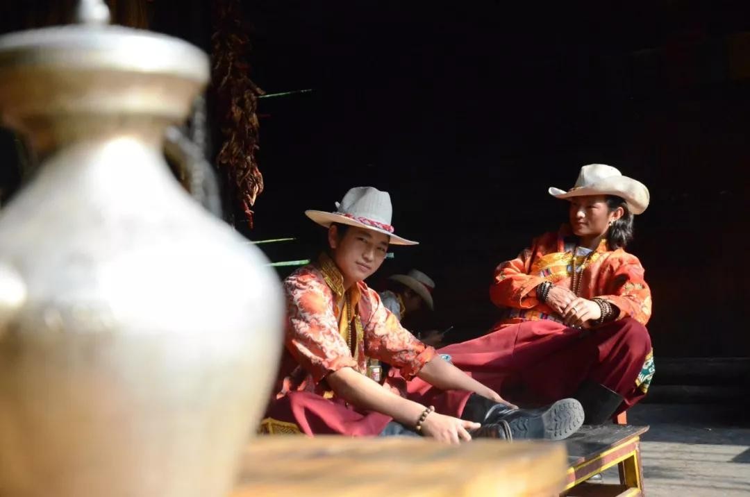穿裤礼:仪式由舅父主持,少男拿些食物,如粑粑、腊肉,到室外叫狗,给狗吃,作为人成年时对狗的感谢。少年男子手握长矛从正房的屋顶穿越而过,矛相传是摩梭人远古使用的武器之一,长矛头上悬挂一面布旗和一把是舅舅授予甥男的长刀,作为终身携带的武器。少男换上成年服装后,达巴念祷词,然后少男向客人叩头,并用牛角杯向客人敬酒。