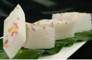 丰县蜜制蜂糕采用上等面粉洗成面筋,擀成片状小块再用洁净的素油炸成蜂窝状,加适量蜂蜜、核桃仁、南桂、桔饼等佐料,最后以香油拌和,上盖绵白糖,精心制作而成。按照传统工艺生产的丰县蜜制蜂糕为长方形,表面呈白色,底部呈金黄色,组织成蜂窝状,质地酥松,甜而不腻。丰县蜜制蜂糕制作技艺本身就是一种文化,其中还蕴含着中华民族孝敬长辈的传统美德。