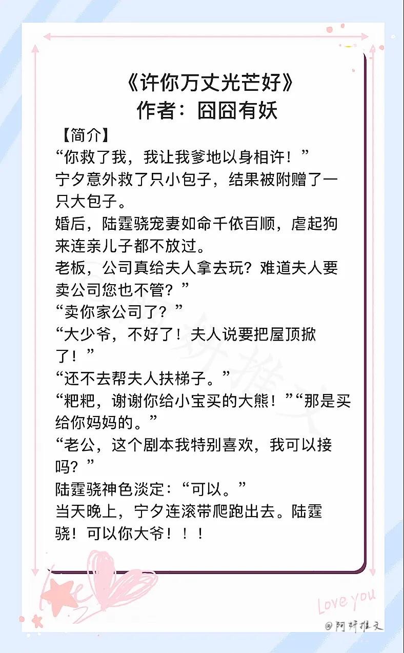 嗨大家好:我是阿妍,你们的小可爱带着热乎乎的的小说文案来了。【小编推荐的都是看过以及自有的小说。】喜欢的宝宝们记得关注,这样就不会错过啦;感谢大家支持!!