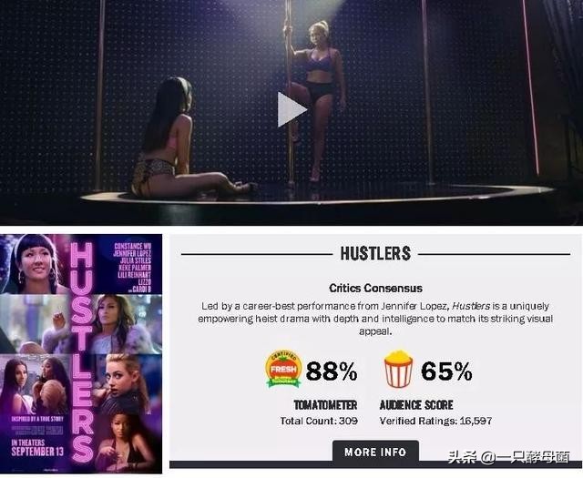 《舞女大盗》首周末观众中女性占比高达67%,大部分观众为家庭主妇人群,年龄在25岁以上的观众占比69%。从族裔来看,影片首周白人观众占36%,非洲裔占比高达26%,亚裔比例也接近10%。影片制作精良而且非常尖锐,女主角最后一句台词,“the whole country is a strip club”,直接将犯罪的“锅”甩给了社会和制度,成功拔高了影片的主题。