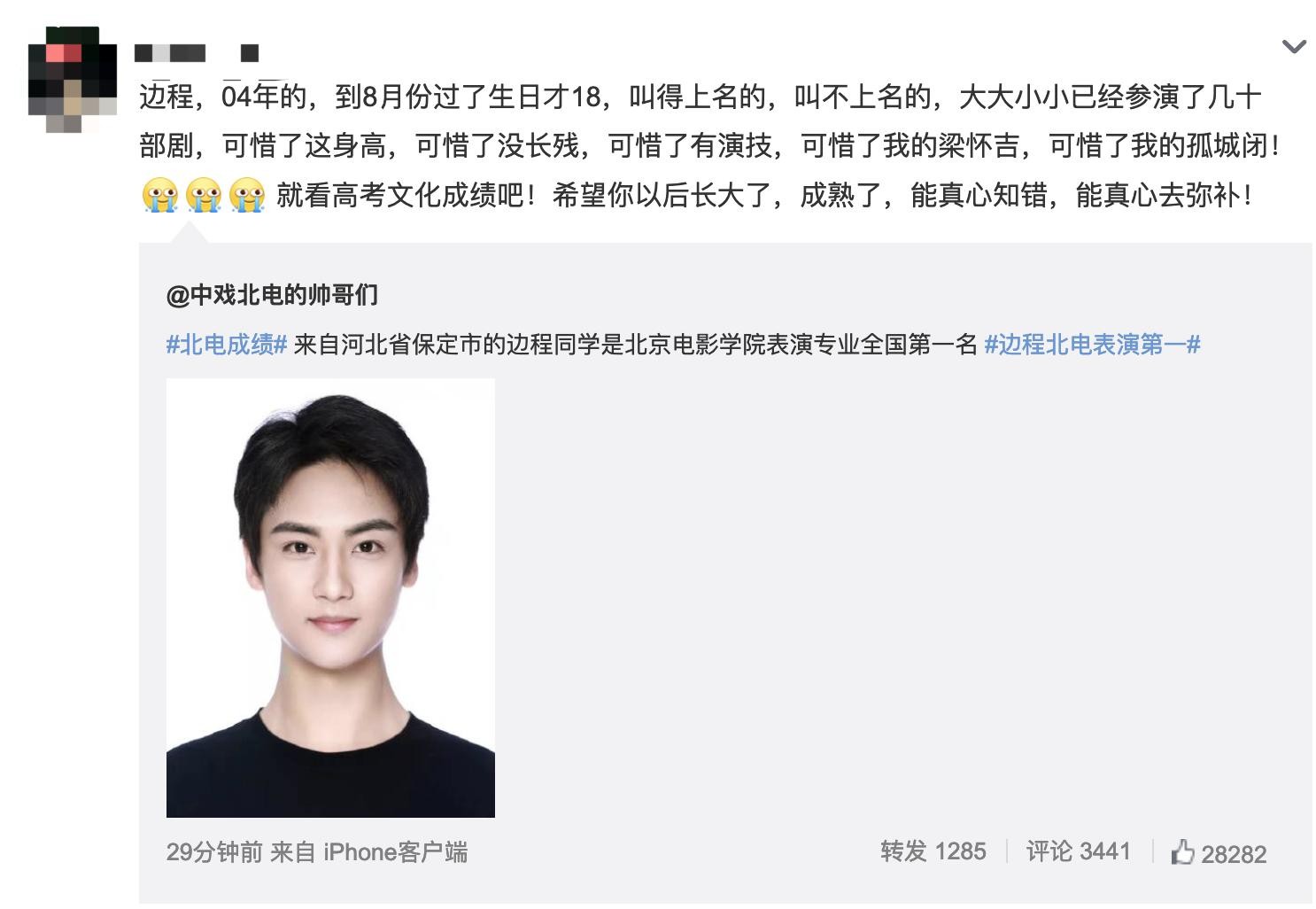 其中边程更是取得了北京电影学院全国专业第一的好成绩,让不少网友刮目相看。