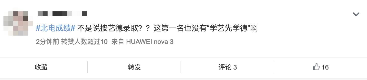 然而,让人意外的是,与关晓彤、吴磊双双获得网友称赞的待遇不同,边程的成绩一出,不少网友态度冷淡,有些甚至出言讽刺,质疑北电怎么选了“没有学艺先学德”的演员做第一名。