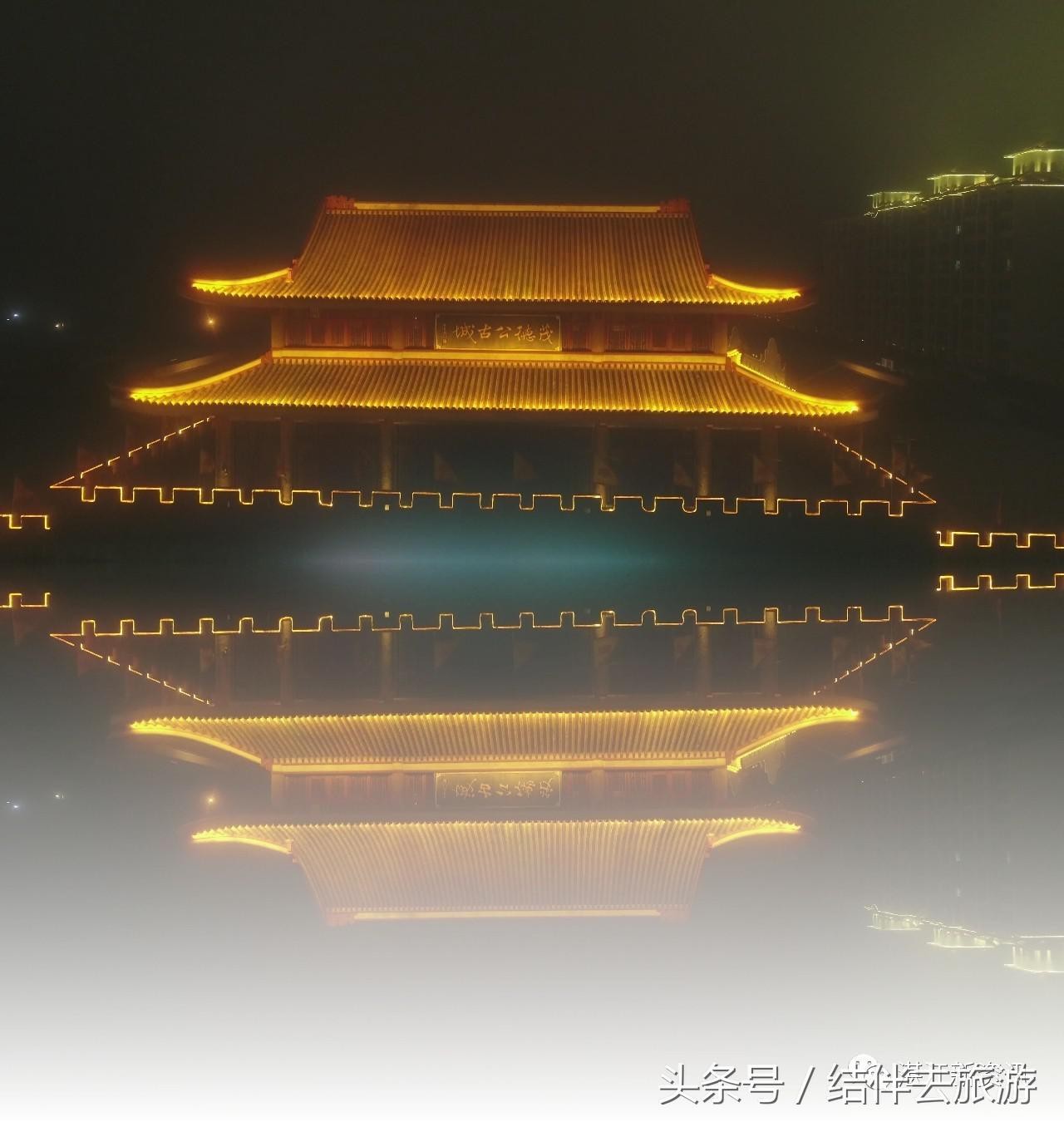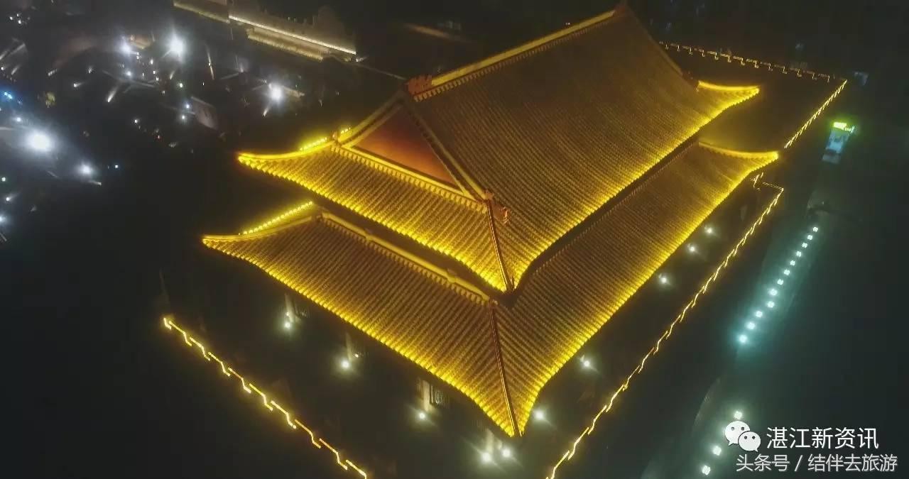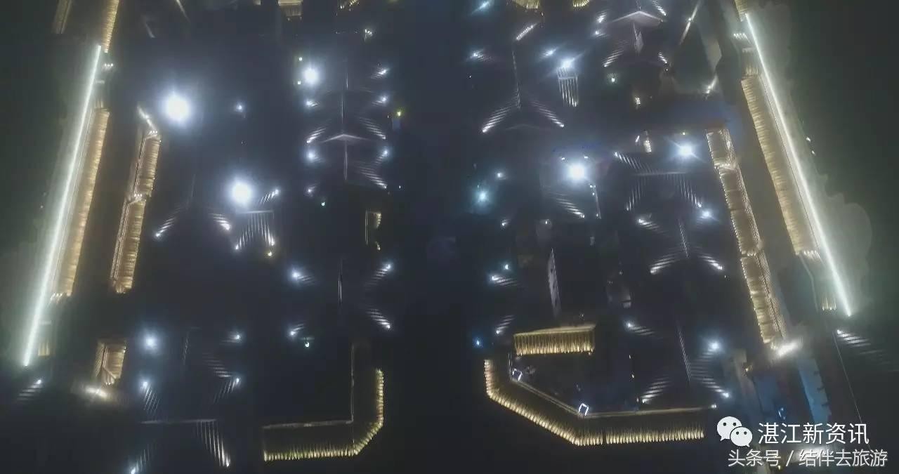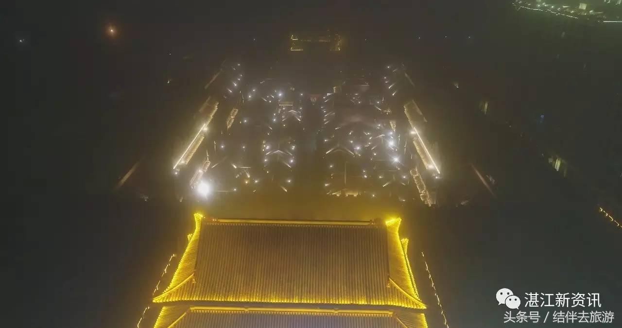 航拍雷州 雾里 茂德公古城夜景